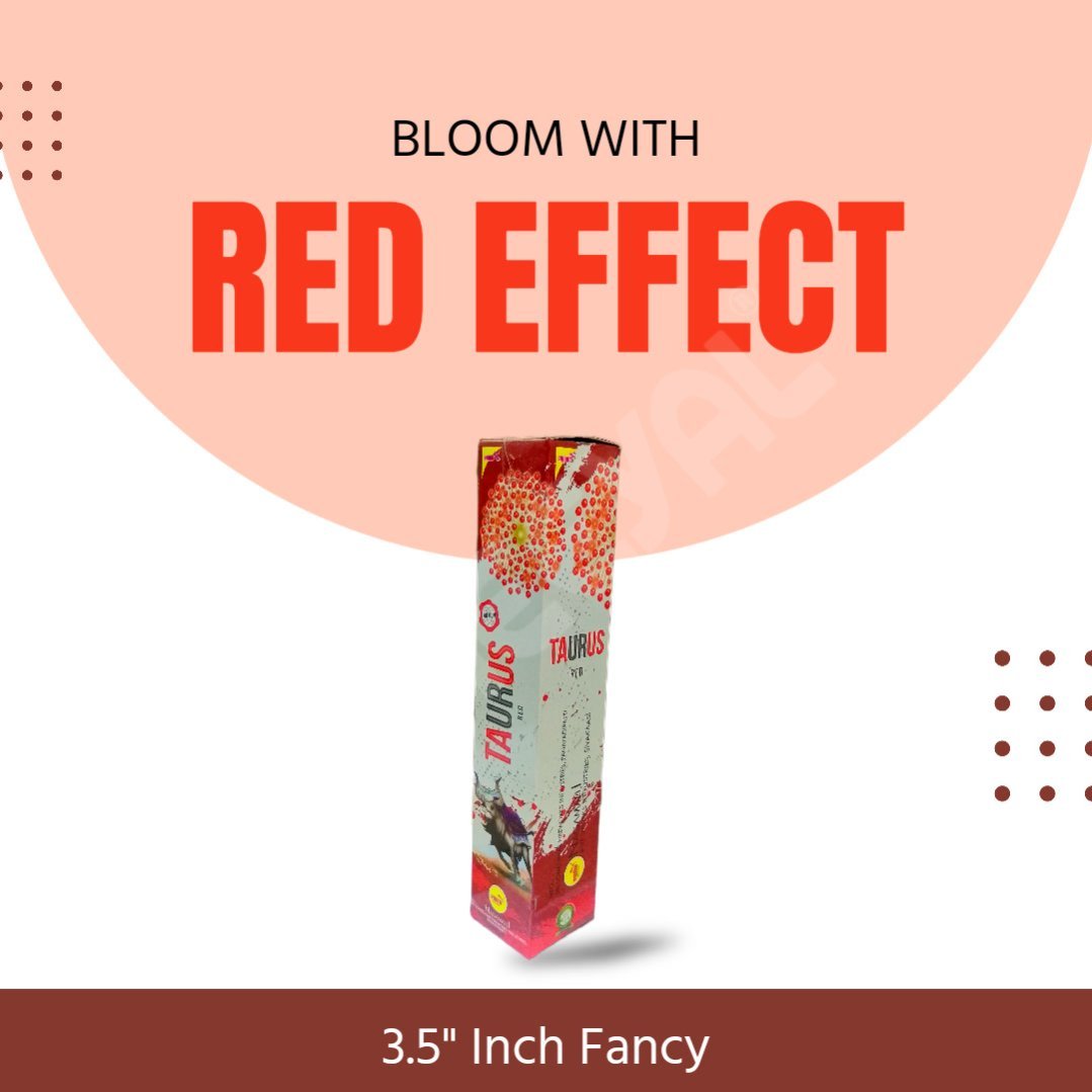 Get ready to ignite your Diwali celebrations with Taurus – 1Pc/Box – 3.5" Fancy Shot, a premium function firework that delivers a loud boom with a brilliant red burst effect in the sky. This powerful single-shot is designed for maximum impact, making it the perfect centerpiece for your festive display.