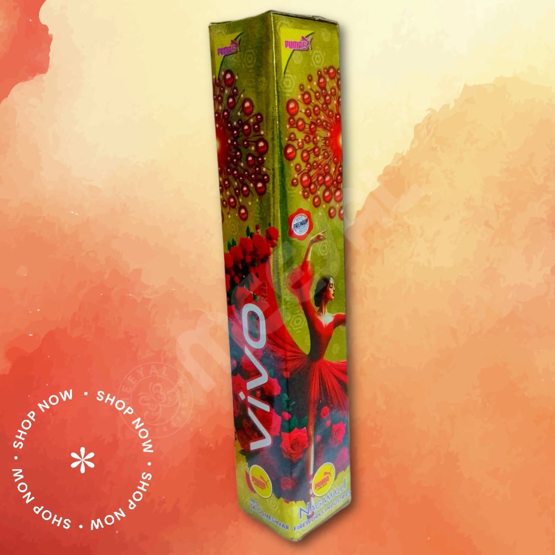 Vivo - 1Pc/Box (2.5 Inch Fancy Shot) is an exciting single-shot firework that delivers a dynamic boom with a vibrant red effect, lighting up the night sky in style. This 2.5-inch fancy shot is crafted for those who love powerful effects packed into a compact unit. Perfect for outdoor Diwali functions and festive gatherings.