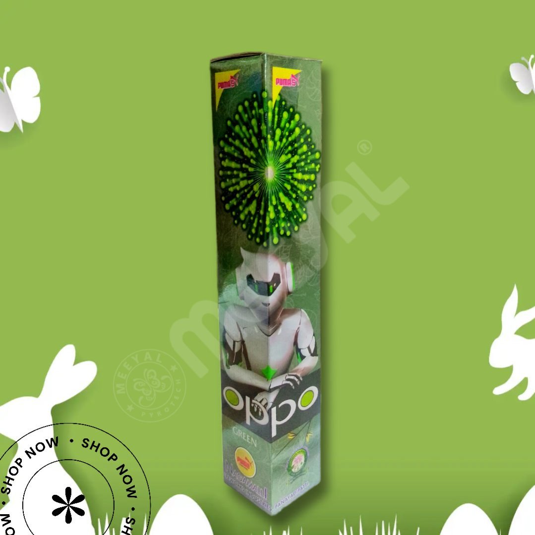 Celebrate this Diwali with the Oppo – 1Pc/Box (2.5 Inch Fancy Shot), a compact yet powerful sky cracker that dazzles with a vibrant green boom effect. Designed for thrill-seekers, this single-shot firework bursts high into the sky and lights up the night with a mesmerizing flash of green brilliance followed by a satisfying boom.