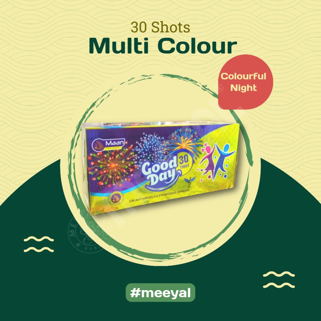 Get ready for a vibrant Diwali night with our 30 Multicolour Shots, a spectacular aerial firework that fills the sky with dazzling red, green, gold, and silver hues! Each shot bursts with sizzling brilliance, creating a magical atmosphere for your celebrations. Enjoy a thrilling sequence of colourful explosions that light up the sky with vibrant trails and sparkles.